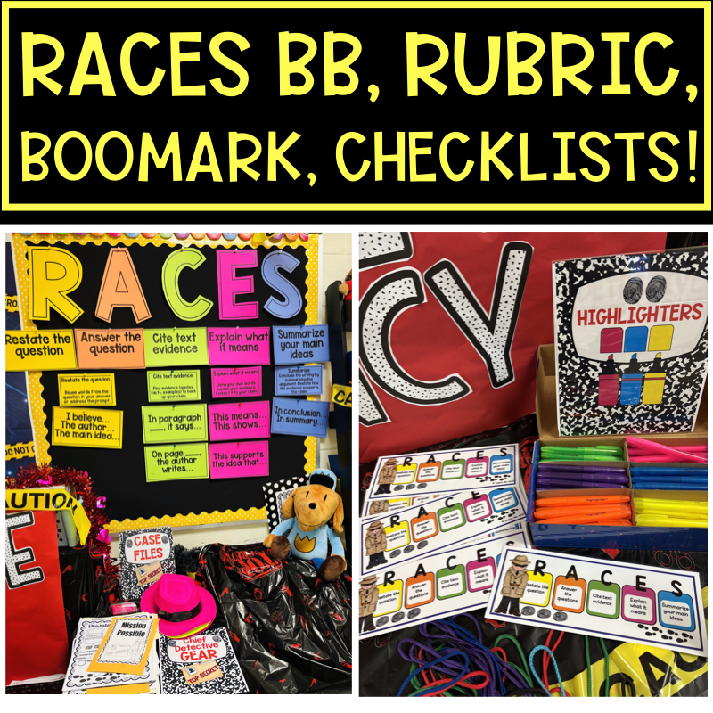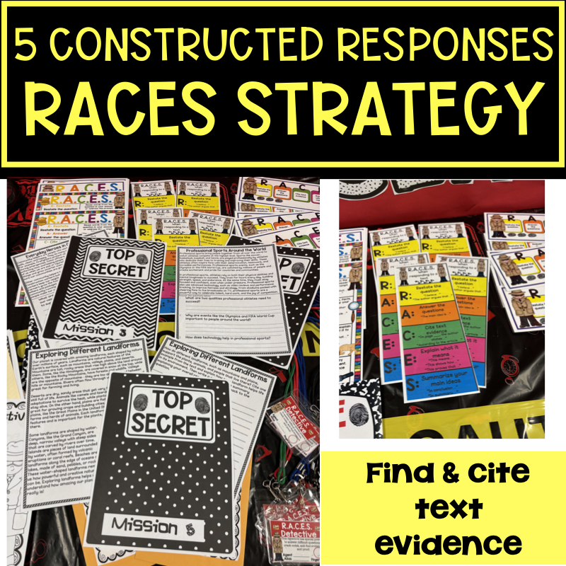 Looking for a way to make teaching RACES engaging and unforgettable? Transform your classroom into a detective agency and turn your students into Text Detectives! In this interactive, fun, and engaging unit, students will use a detective theme while learning how to write clear and organized responses, using RACES. Using the RACES strategy teaches students what good writers do, in all content areas- restating the question in a complete sentence, answering all parts of the question(s) / or prompts, citing text evidence, fully explaining what it means, and summarizing the main ideas.