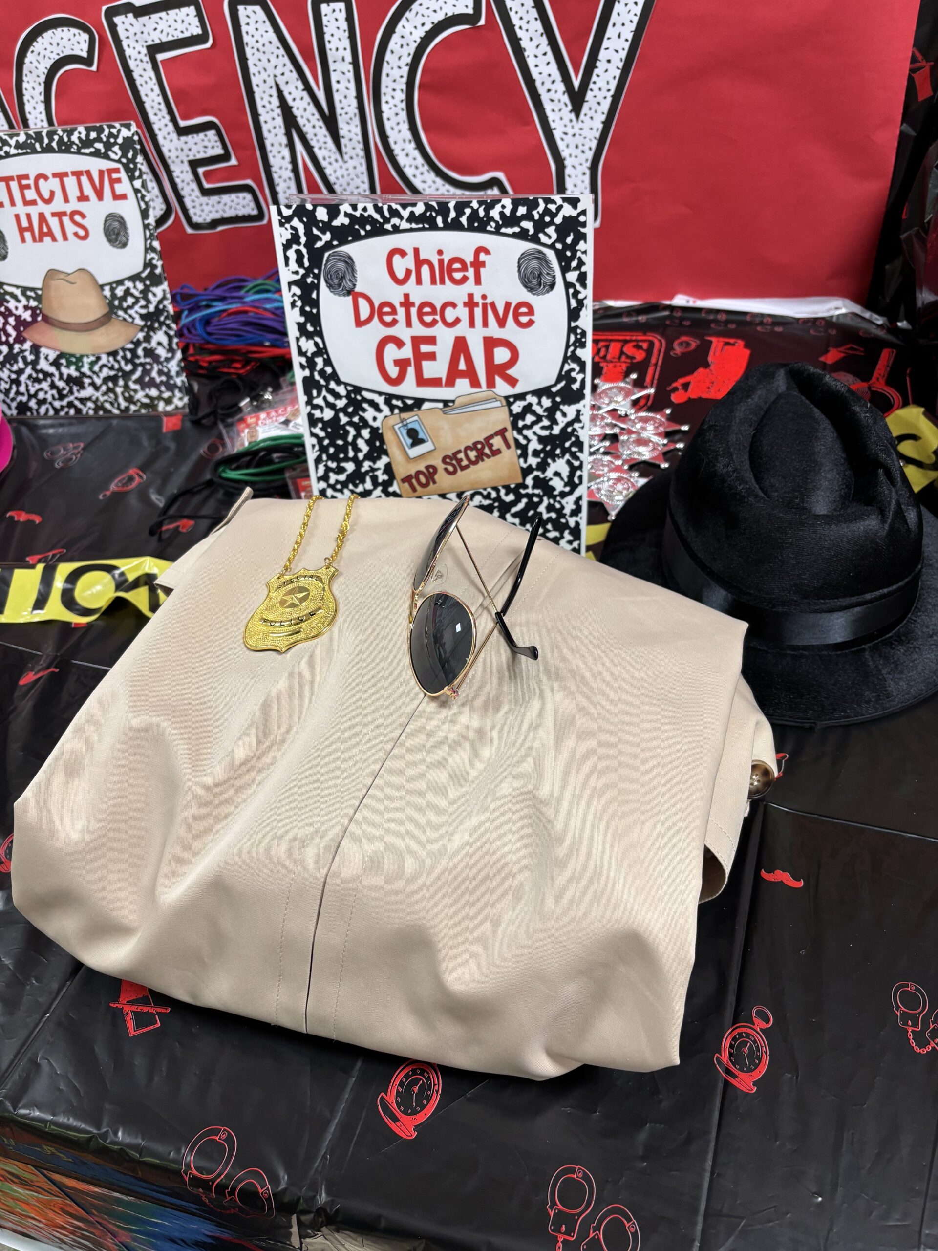 - 8 Color posters to print and display for the Detective Agency: Case Files, Detective Hats, Highlighters, Magnifying Glasses, Highlighters, Chief Detective Gear, Detective Gear, Detective Notebooks, Detective Badges